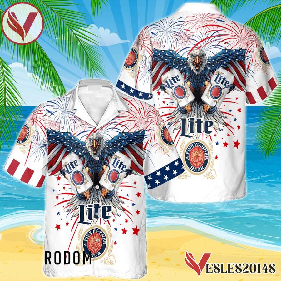 Miller Lite Eagle Fireworks Independence Day Hawaiian Shirt, Best Summer Gifts For Fans – Vesles2014S
