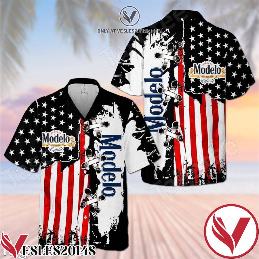 You’re viewing Modelo USA Flag Cross Stitch Black White Hawaiian Shirt And Short