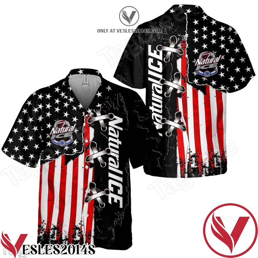 You’re viewing Natural Ice Usa Flag Cross Stitch Black Hawaiian Shirt And Short
