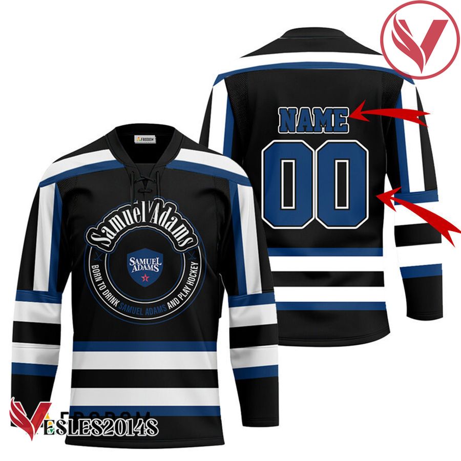 Personalized Black Born To Drink Samuel Adams and Play Hockey Jersey – Vesles2014S
