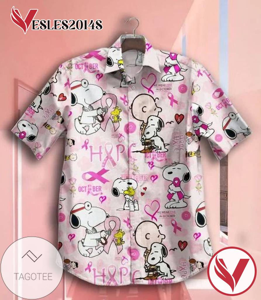 You’re viewing Snoopy Breast Cancer Awareness Graphic Print Short Sleeve Hawaiian Casual Shirt – Vesles2014S