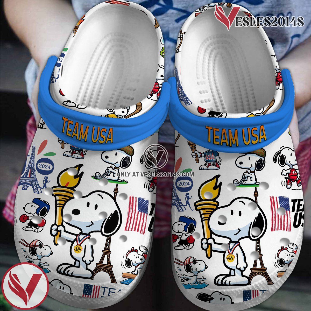 You’re viewing Snoopy USA Team 2024 Cartoon Crocs Crocband Clogs Shoes Comfortable For Men Women and Kids