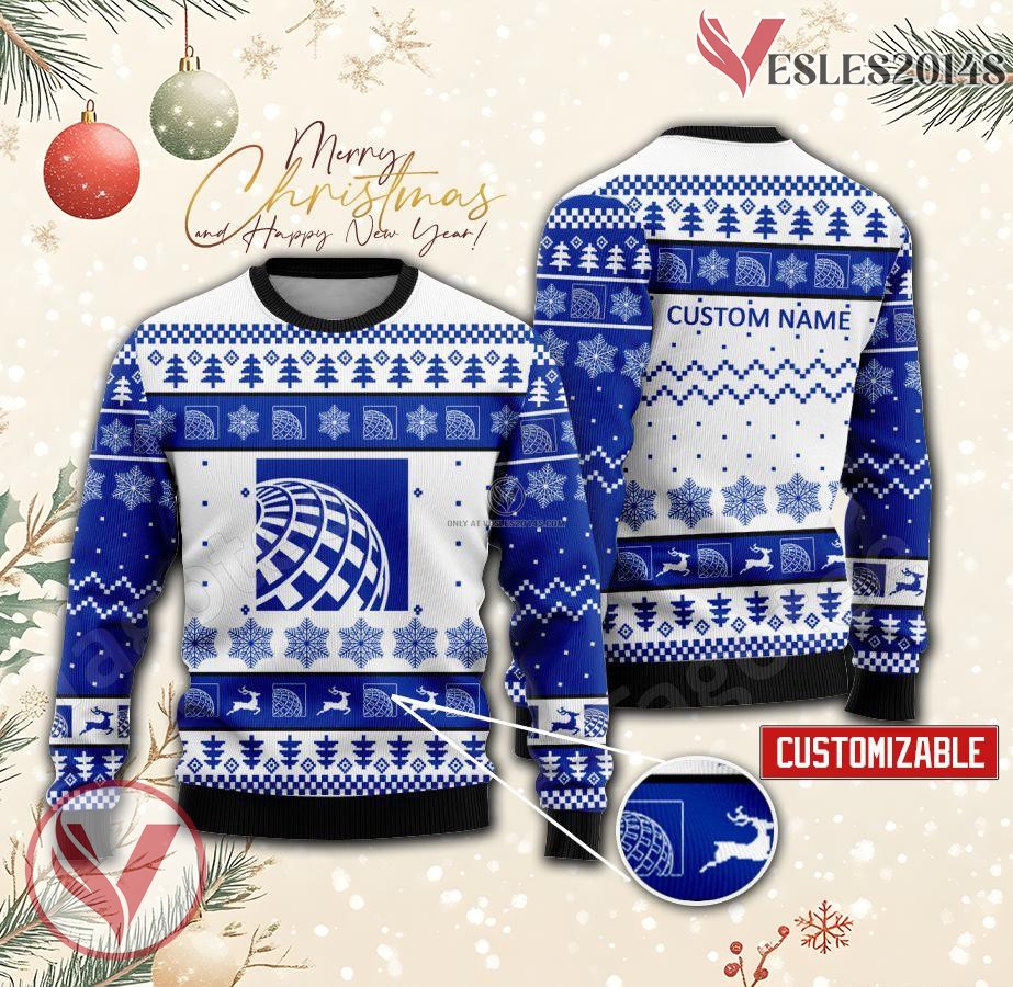 United Airlines Logo Personalized Ugly Christmas Sweater, Unique Gift For Fans – Vesles2014s